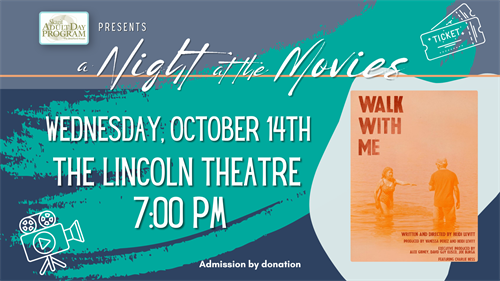 Join Skagit Adult Day Program for a night at the movies, as we watch Walk With Me (2024) written and directed by Heidi Levitt. The film tells the story of Heidi and her art director husband Charlie as they journey through the emotional turbulence of Charlie’s diagnosis of early-onset Alzheimer’s and the life changes that come along as a result.